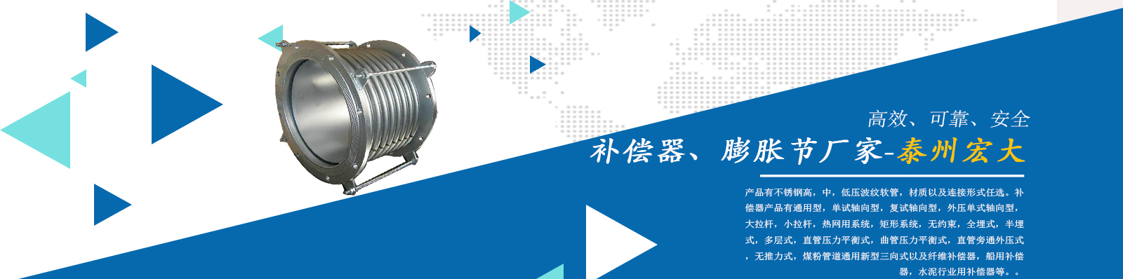 泰州市宏大機械設備有限公司是一個企業(yè)內部管理嚴謹,工作作風穩(wěn)健,職工素質水平較高,經(jīng)濟實力雄厚,產(chǎn)品質量放心,外部形象良好的企業(yè)。本公司專業(yè)從事補償器廠家,膨脹節(jié)廠家,膨脹節(jié)補償器,其中有不銹鋼高,中,低壓波紋軟管,材質以及連接形式任選。補償器產(chǎn)品有通用型,單試軸向型,復試軸向型,外壓單式軸向型,大拉桿,小拉桿,熱網(wǎng)用系統(tǒng),矩形系統(tǒng),無約束,全埋式,半埋式,多層式,直管壓力平衡式,曲管壓力平衡…...